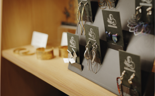 ![]()  The room number nameplates and the frog furniture in the lobby are actually made by Kikuma Tawara. The coasters and chopstick rests sold at the shop are popular items!