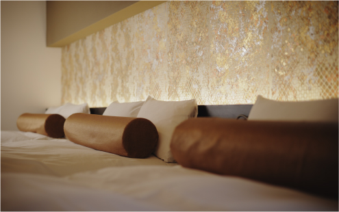 ![]()  On the walls of the bed (in some guest rooms) is Gilding Washi, made by the Ikazaki Company, based in Ikazaki, Uchiko-cho, Ehime Prefecture. They were the first company in the world to succeed in applying gilding (metal foil) to Washi, and it is a breathtaking work of art!