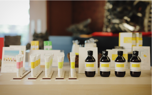 宿泊客以外のお客様がわざわざ足を運ぶこともあるというギフトショップ。女性に人気の天然100%エッセンシャルオイル「Hime-Kagura媛香蔵®シリーズ」など、お土産としてはもちろん、毎日の暮らしに取り入れたくなるこだわりの逸品が盛りだくさん!